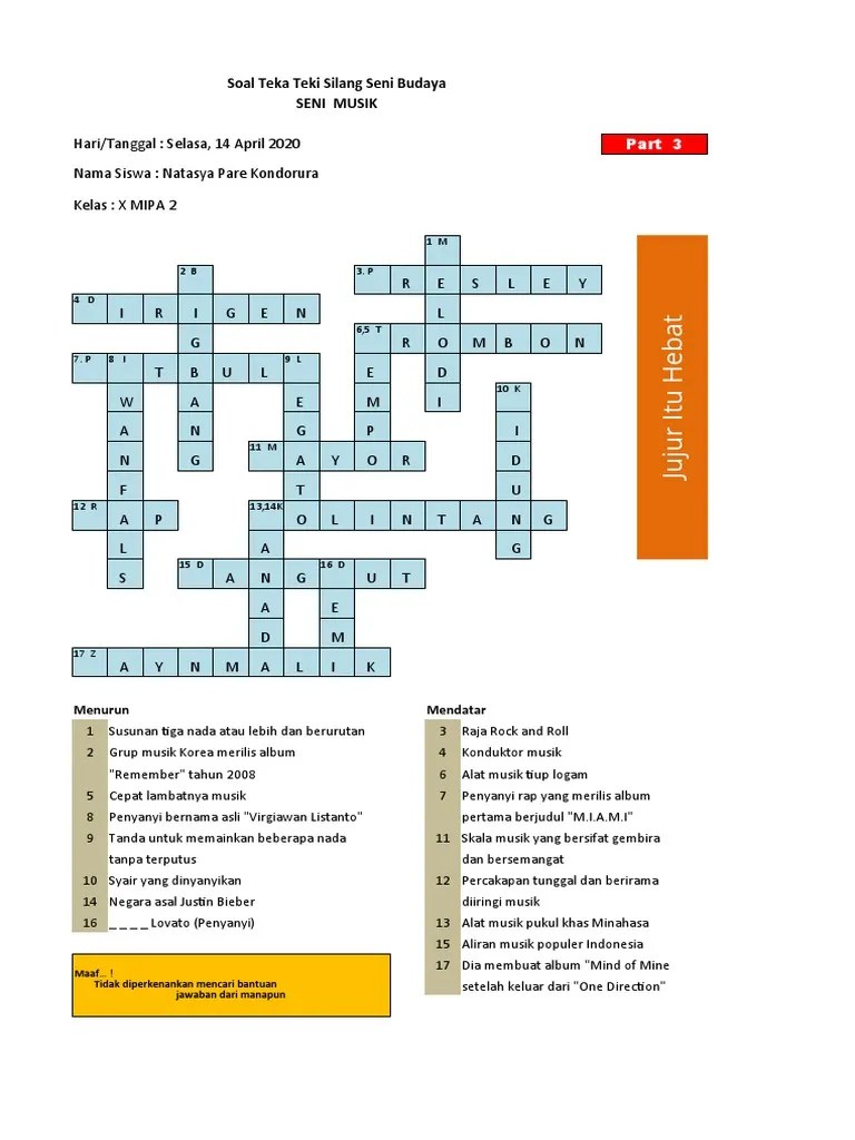 Pada segmen ao berdiskusi pembelajaran 3. Pada artikel ini, anda akan menemukan semua kunci jawaban dari tts santai gili lawa level 3. Tts pro adalah game permainan teka teki silang untuk platform "android". Teori mengenai algoritma backtracking berikut ini mengacu kepada 3. Seharga enam ribu atau tiga ribu rupiah, digunakan dalam akta. Berikut ini jawaban tts (teka teki silang) tema 4 kelas 2 sd mi. Berbicara mengenai hal ini, kali ini salah satu game teka teki yang akan kami bahas kali ini adalah floating market. Ok guys, buat yang masih merasa sulit meski sudah mencoba menggunakan bantuan (petunjuk / tanya), ini adalah kunci jawaban tts #3, . Tersedia semua solusi dan jawaban yang anda perlukan untuk . Merancang papan tts, sedangkan jawaban dan pertanyaannya akan dibangkitkan. Cari tahu semua jawaban atas tts pintar level #3, permainan memecahkan kata yang populer dan menantang. Negara yang beribukota di islamabad :